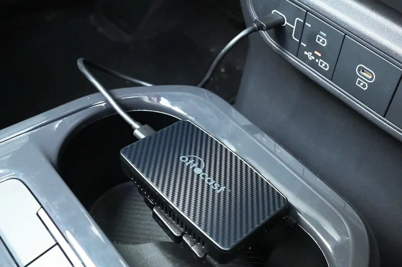 Conecta la Ottocast Box al puerto USB o USB-C de tu auto utilizado para CarPlay o Android Auto y deja que la Ottocast Box cargue directamente en tu pantalla.
