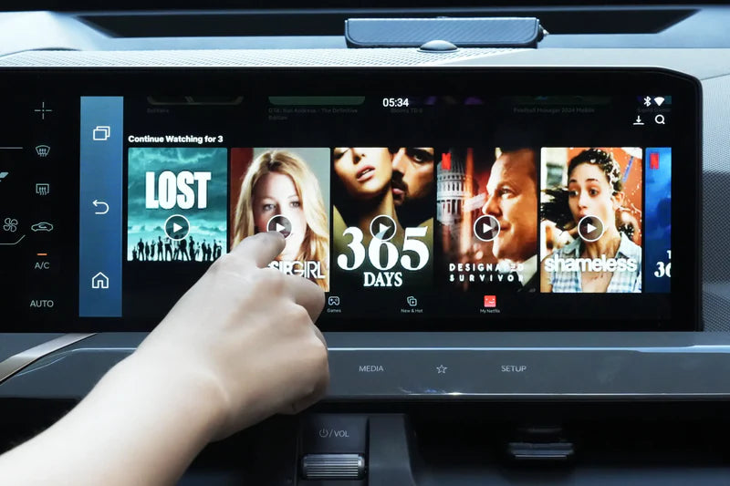 Vive una aventura de cine móvil en cada viaje por carretera. Transmite tus películas favoritas, disfruta maratones de series o escucha música en movimiento — todo en la gran pantalla de tu auto.