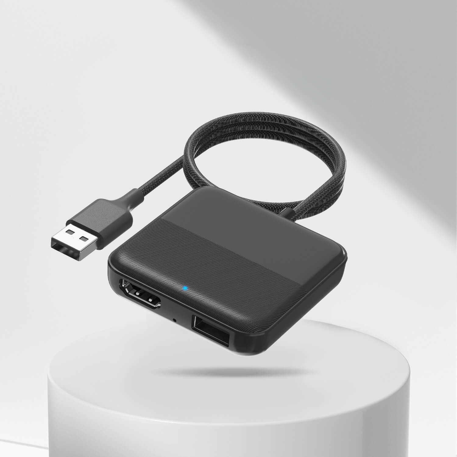 Conecta la Ottocast Box al puerto USB o USB-C de tu auto utilizado para CarPlay o Android Auto y deja que la Ottocast Box se cargue directamente en tu pantalla.